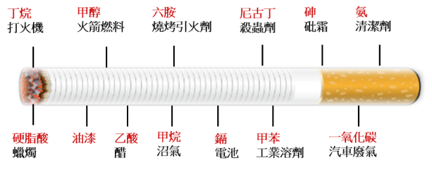 煙草中很多化學物質是帶有毒性及帶放射性的,當中超過70種是致癌物。